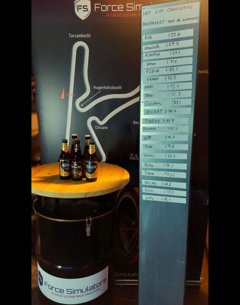 De bewegende simulator trekt veel bekijks en is een mooie manier voor dat stukje team-building. Ga de onderlinge competitie aan met je collega’s door de snelste ronde neer te zetten! De winnaar van de dag ontvangt een bierpakket van ons!